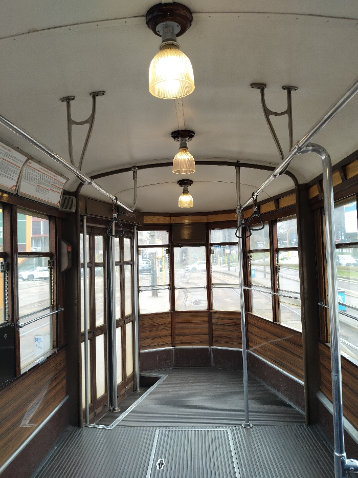 - "The image displays the interior of an empty, vintage-style tram in Milan, Italy, viewed from the rear looking forward" by FM-5zIUy2, licensed under CC BY 4.0
