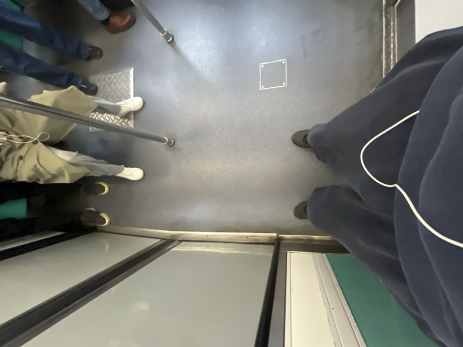- "The image presents a high-angle view looking down into the interior of a public transport vehicle, specifically a Paris Metro train, identifiable by the distinctive grey floor, metal support poles, and the green and white lower paneling visible on the left" by FM-WnOQx1, licensed under CC BY 4.0