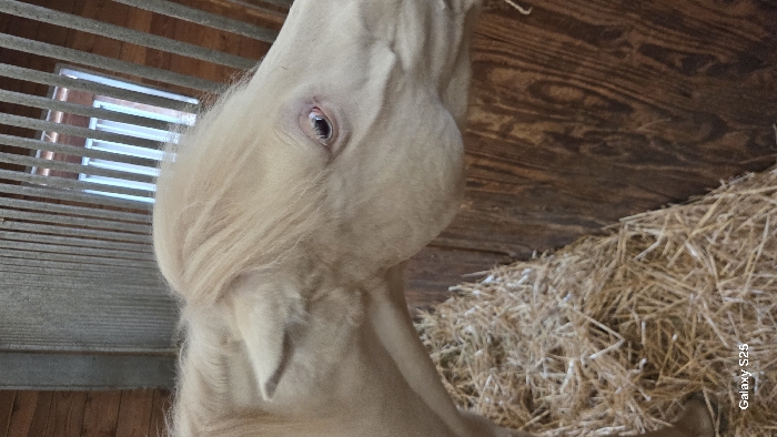 - "A palomino or cremello horse is depicted in profile within a stable in Saint-Avold, France" by FM-sTzIG3, licensed under CC BY 4.0