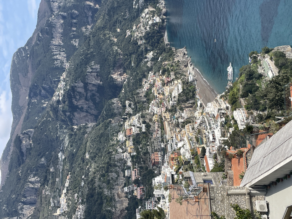 - "The image displays a high-angle panoramic view of Positano, Italy, a town built into the steep slopes of mountains that descend directly into the Tyrrhenian Sea" by FM-4OCh93, licensed under CC BY 4.0