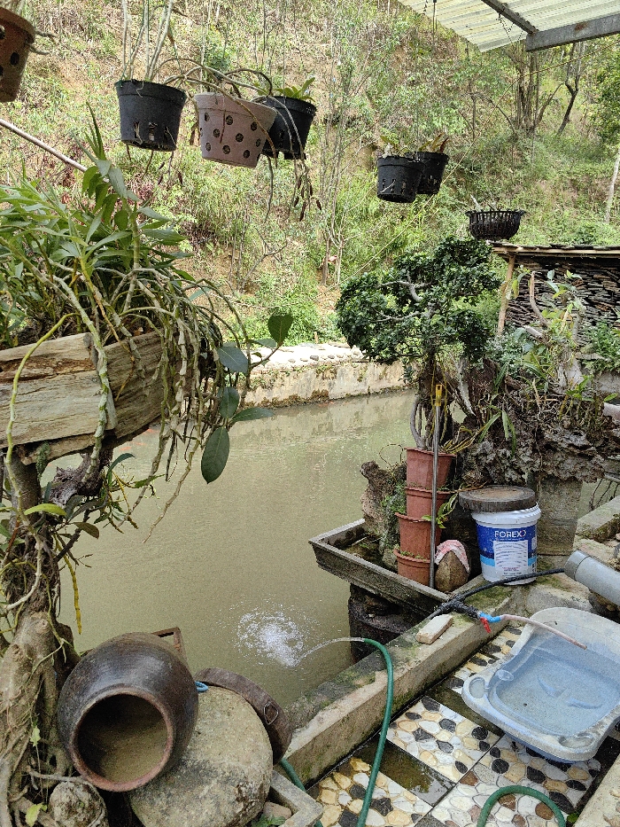 - "The image displays an outdoor scene in Mù Cang Chải, Vietnam, featuring a man-made pond or water feature in the midground, bordered by concrete and a tiled patio area in the foreground" by FM-gnqSa2, licensed under CC BY 4.0