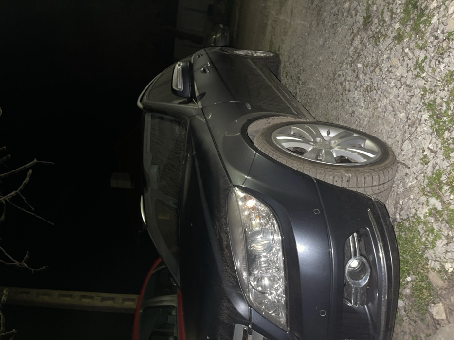 This nighttime image, captured in Dragijevo, Bulgaria, depicts a dark gray Mercedes-Benz C-Class (W204 generation) station wagon parked on a gravel surface
