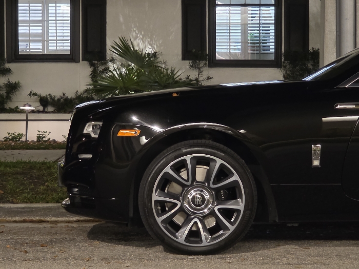 - "The image depicts the front passenger side of a black Rolls-Royce luxury vehicle, positioned on an asphalt surface, likely a residential street or driveway" by FM-kdVfz2, licensed under CC BY 4.0