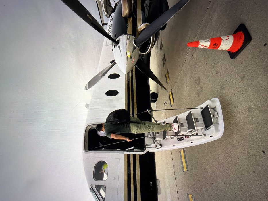- "A male individual is observed ascending the integrated airstairs of a turboprop aircraft on an airport tarmac in Paris, France" by FM-N1L8J2, licensed under CC BY 4.0