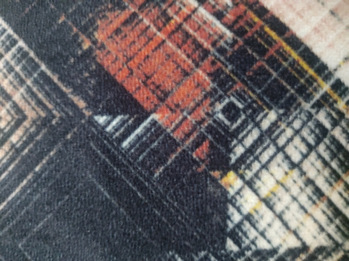 - "The image displays a close-up view of an abstract geometric pattern on a textured surface, consistent with a textile or carpet material" by FM-oA80i1, licensed under CC BY 4.0
