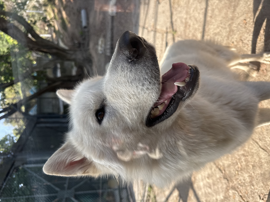 - "A large, white canid, consistent with a wolf or wolf-hybrid, is depicted standing within an enclosure" by FM-Ribsj1, licensed under CC BY 4.0