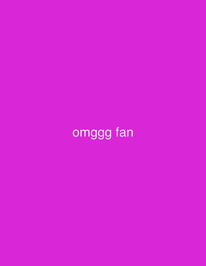 The image consists of a solid magenta background. Centered horizontally and vertically on this background is white text that reads "omggg fan". No discernible people, subjects, objects, actions, interactions, or environmental features are present within the image. Therefore, no specific location in Paris, France, or any other city can be identified from the visual content provided.