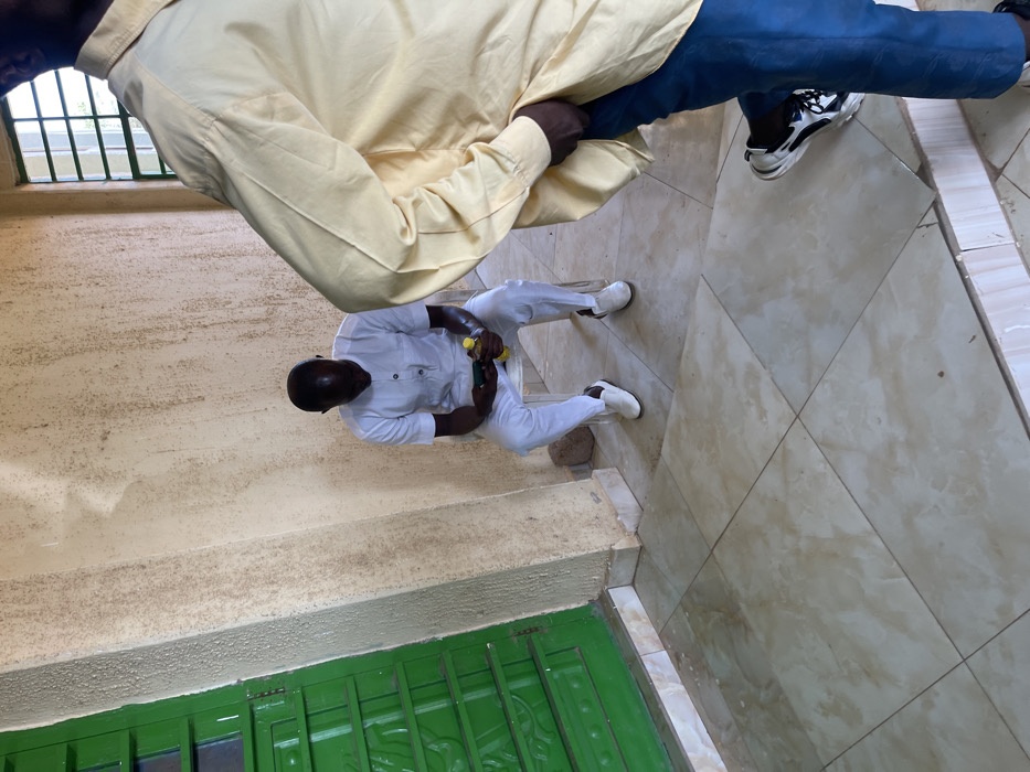 The scene depicts two individuals within a building in Kufena, Nigeria