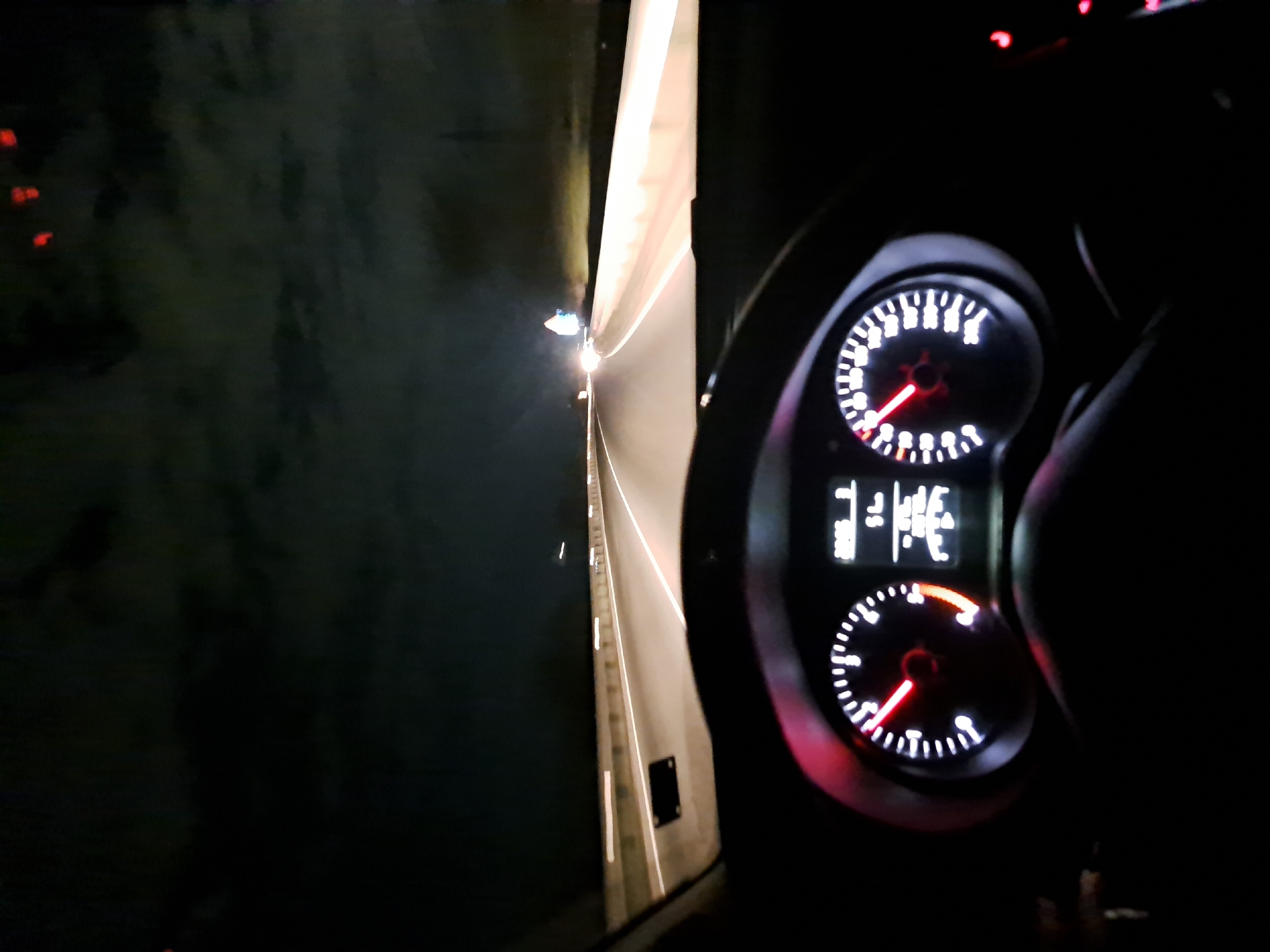 The image depicts the view from inside a vehicle traveling through a tunnel