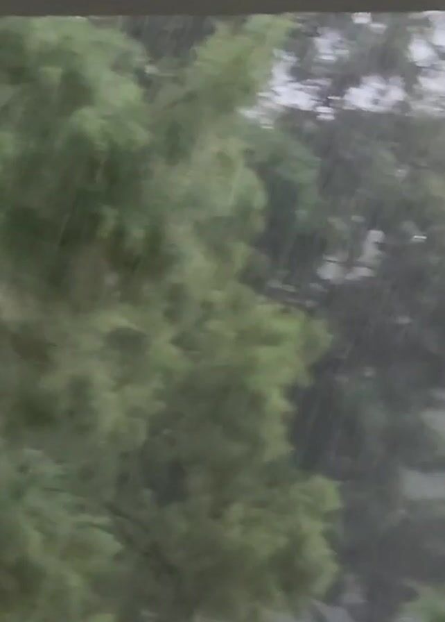 - "view of green trees being heavily rained on, seen through what appears to be a window or doorway" by FM-zw5Y13, licensed under CC BY 4.0