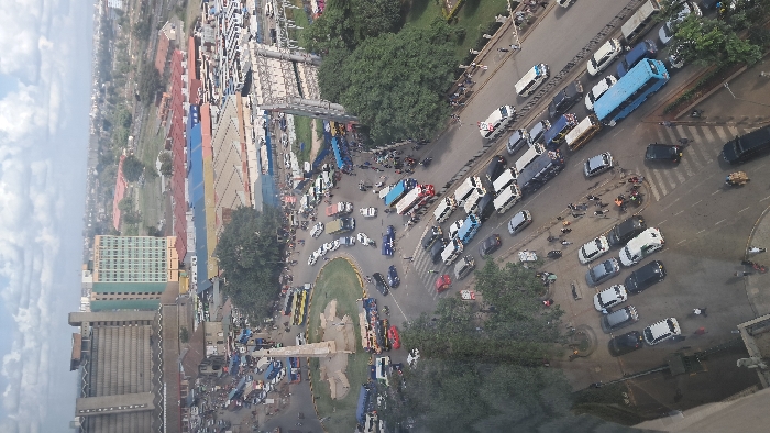 - "An elevated, wide-angle view captures a dense urban scene in Nairobi, Kenya, centered on the Uhuru Highway Roundabout (Globe Roundabout) within the Central Business District" by FM-fXIKl2, licensed under CC BY 4.0