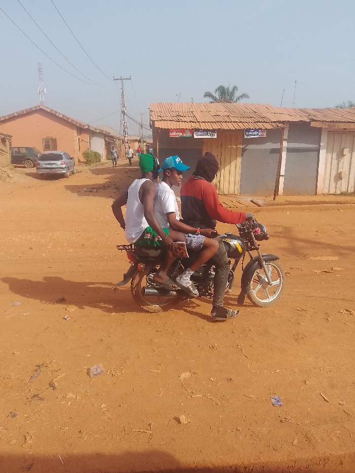 This image depicts a daytime scene on an unpaved street in Yelwa, Nigeria