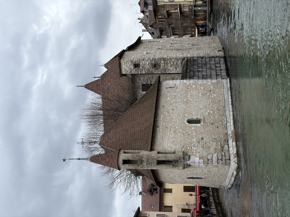 - "The image depicts the Palais de l'Isle, a historic stone building situated centrally within the Thiou canal in Annecy, France, under an overcast sky" by FM-PcEqo1, licensed under CC BY 4.0