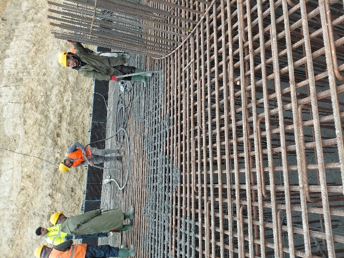 This image depicts a construction site in Sidi Moussa Ben Ali, Morocco, showing six individuals engaged in concrete pouring operations