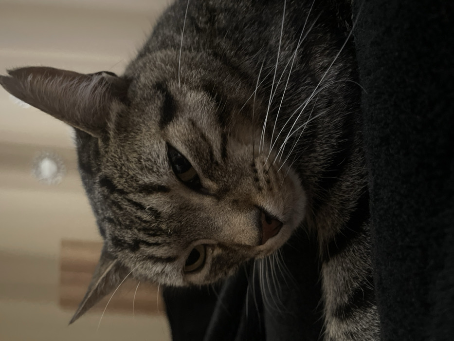 - "A close-up captures a gray tabby cat, head tilted to its right" by FM-qaxKg1, licensed under CC BY 4.0