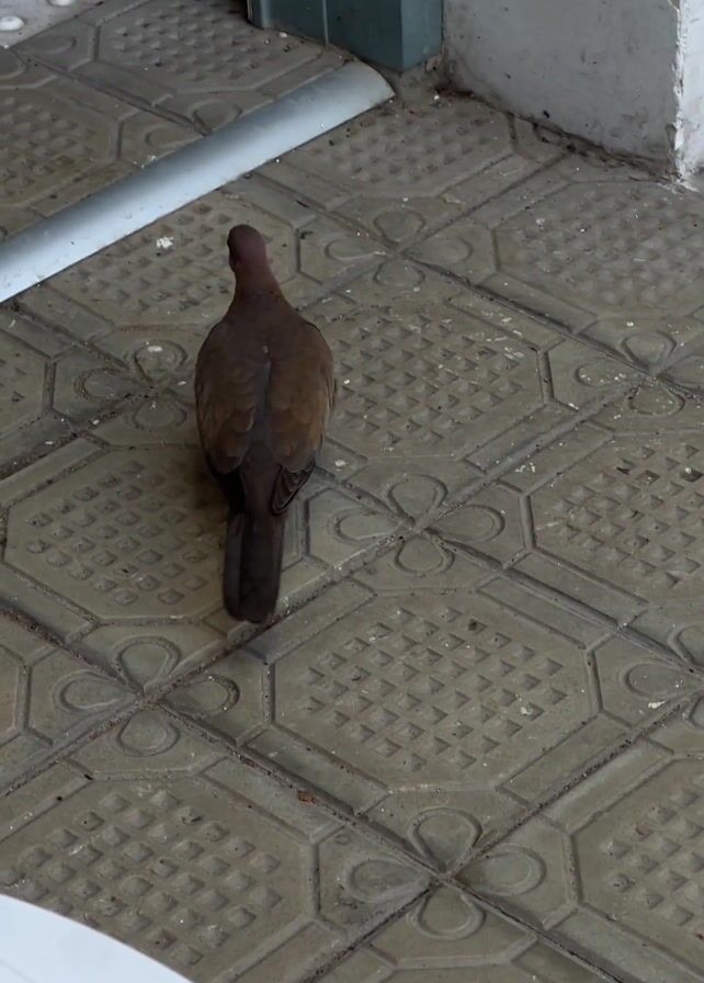 - "A medium shot video shows a brown dove walking on a tiled floor toward a dark doormat" by FM-Vq3LF2, licensed under CC BY 4.0