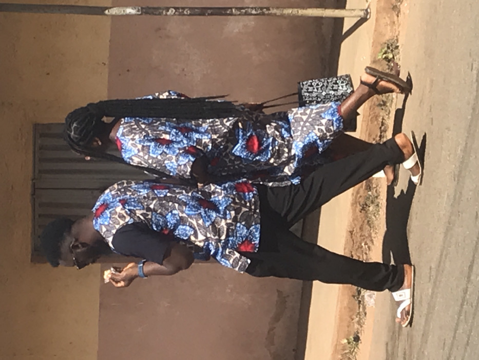 - "Two individuals, a man and a woman, are depicted walking side-by-side from left to right on a paved surface under bright sunlight in Jos, Nigeria" by FM-6DVA23, licensed under CC BY 4.0