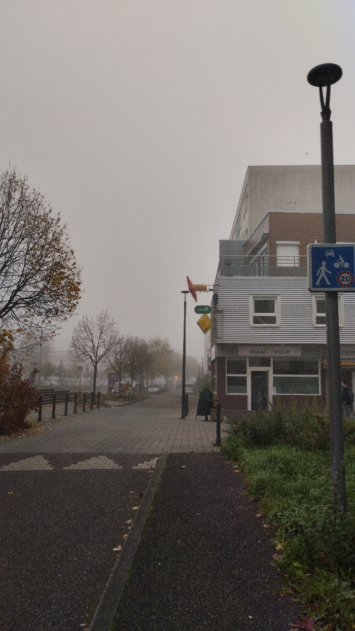 - "A foggy cityscape shows a path alongside a building with "MIAM MIAM" written on the front" by FM-uMUqt2, licensed under CC BY 4.0
