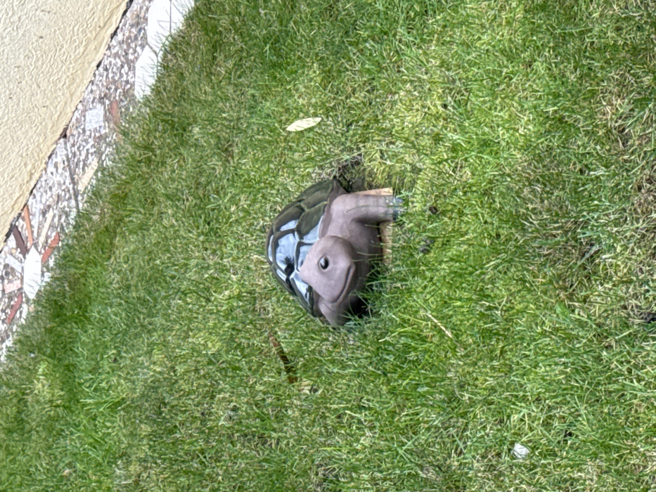 - "An outdoor scene in Hoenheim, France, features a single garden statue of a turtle on green grass" by FM-MKghF3, licensed under CC BY 4.0
