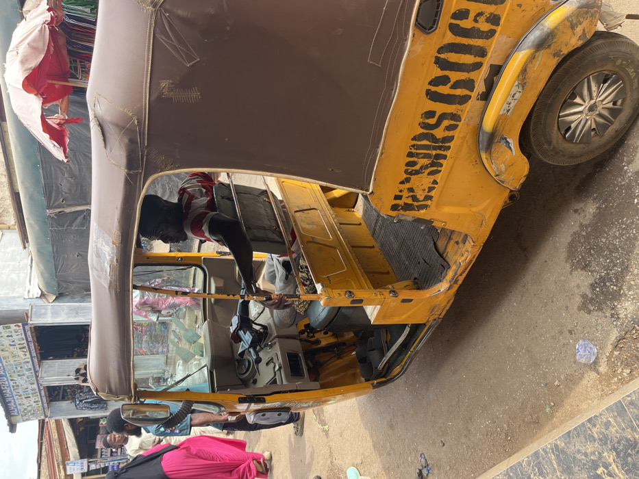 - "The image displays a daytime street scene in Minna, Nigeria, featuring a prominent yellow and brown motorized tricycle (Keke Napep) positioned on a dirt-paved road adjacent to a concrete curb" by FM-2ubNq1, licensed under CC BY 4.0