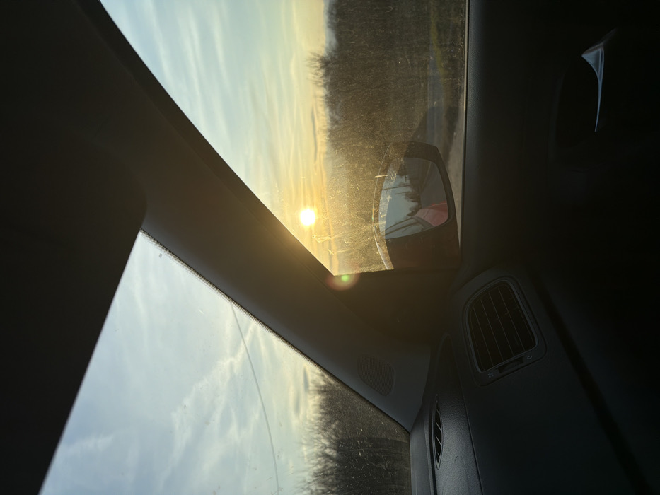 - "The image provides an interior perspective from a vehicle, looking forward and towards the passenger side, during either sunrise or sunset in Blagovo, Bulgaria" by FM-s2kFx1, licensed under CC BY 4.0