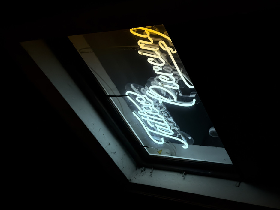 - "The image displays a neon sign located within a storefront window, viewed from an upward angle at night in Gdańsk, Poland" by FM-nKrUC2, licensed under CC BY 4.0