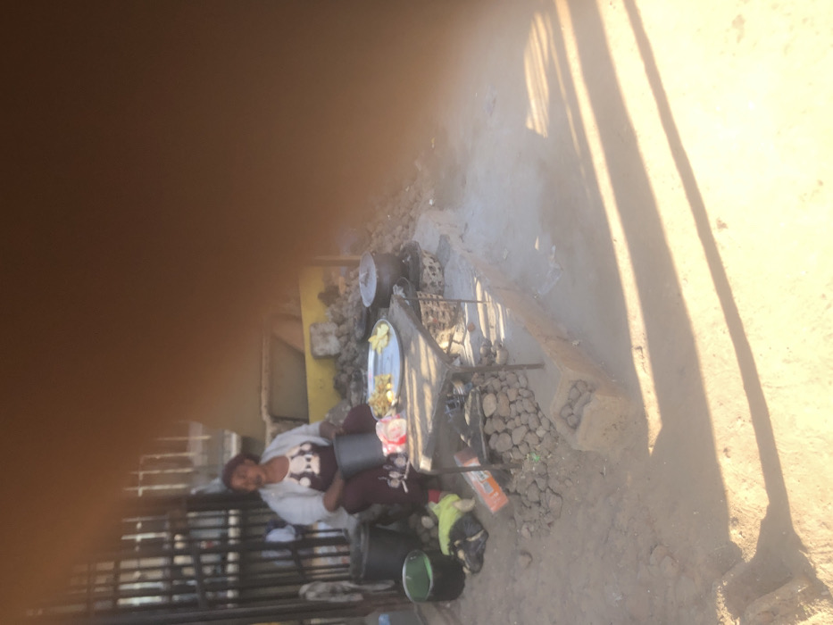 This image captures an outdoor food preparation or vending scene in Kufena, Nigeria