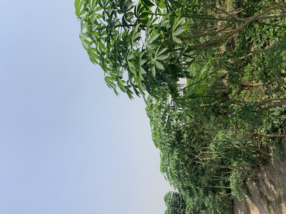 - "The image displays a cultivated field of numerous green cassava plants (Manihot esculenta) under a clear, light blue sky in Ijanikin, Nigeria" by FM-Fndgt1, licensed under CC BY 4.0
