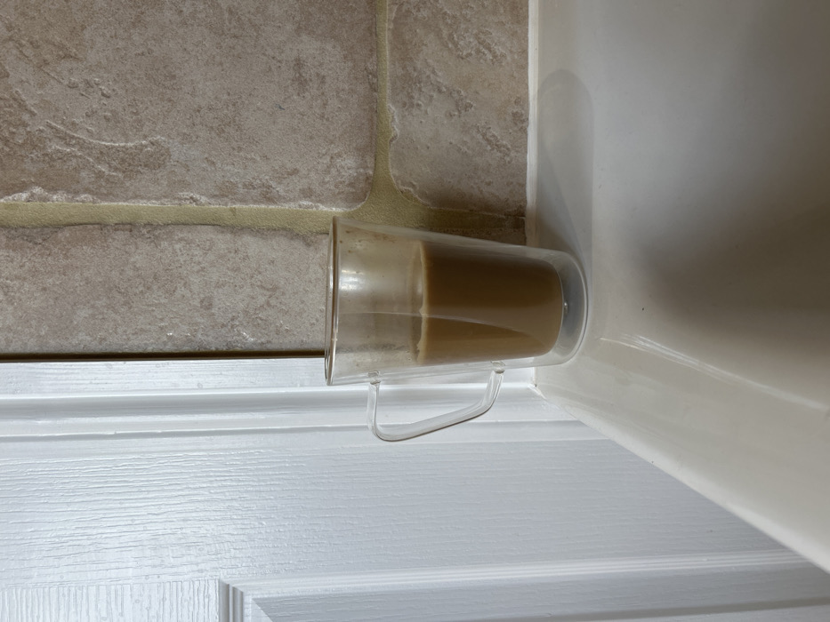- "A clear, double-walled glass mug containing a light brown liquid, consistent with coffee or tea with milk and approximately two-thirds full, rests on a white, reflective horizontal surface" by FM-n2Lf93, licensed under CC BY 4.0