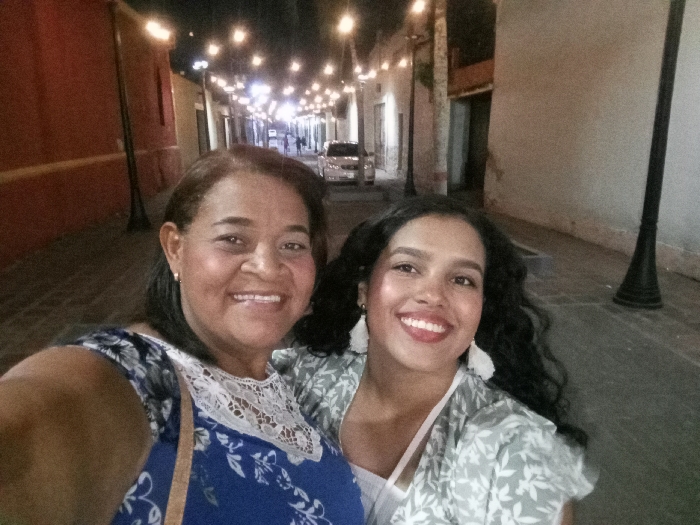 - "The image displays two smiling adult females posing for a close-up photograph on an urban street at night in La Victoria, Venezuela" by FM-CvYf82, licensed under CC BY 4.0