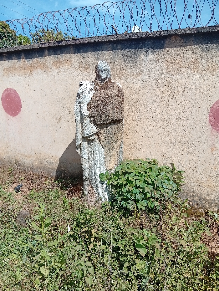- "The image displays an outdoor scene in Jos, Nigeria, featuring a weathered religious statue positioned against a concrete wall" by FM-T56IS2, licensed under CC BY 4.0