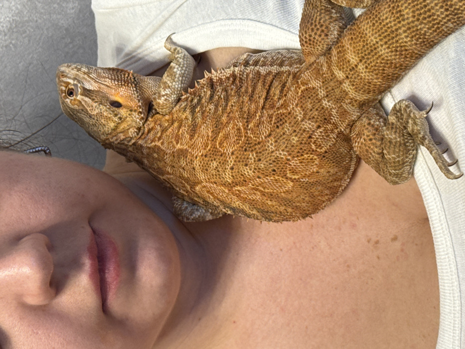 - "This image, captured in Yakhroma, Russia, presents a close-up view of a female individual with a bearded dragon" by FM-VJm8n1, licensed under CC BY 4.0