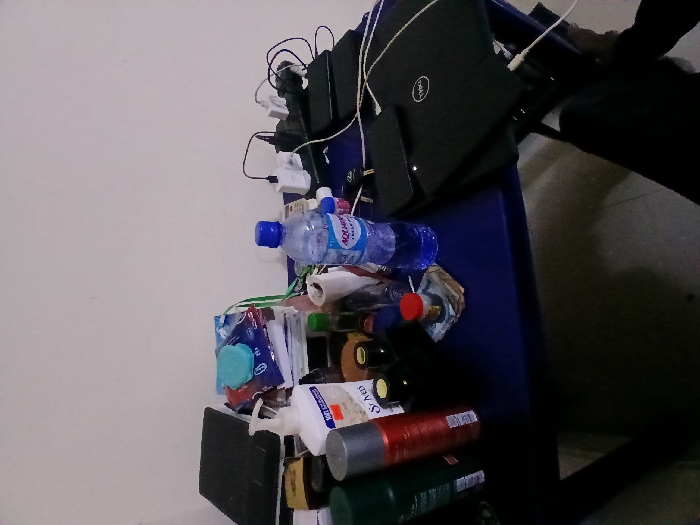 - "The image displays a cluttered blue plastic table positioned against a plain white wall in Makurdi, Nigeria" by FM-ueEo62, licensed under CC BY 4.0