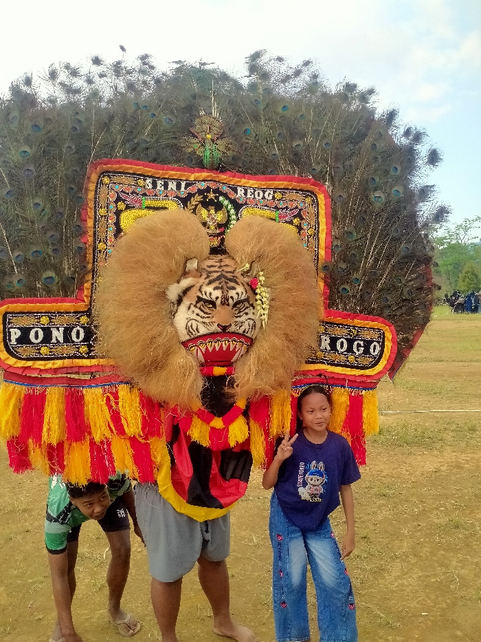 - "The image depicts three individuals interacting with a large Reog Ponorogo performance prop in an open, unpaved field in Sidomukti, Indonesia" by FM-3Xduo1, licensed under CC BY 4.0