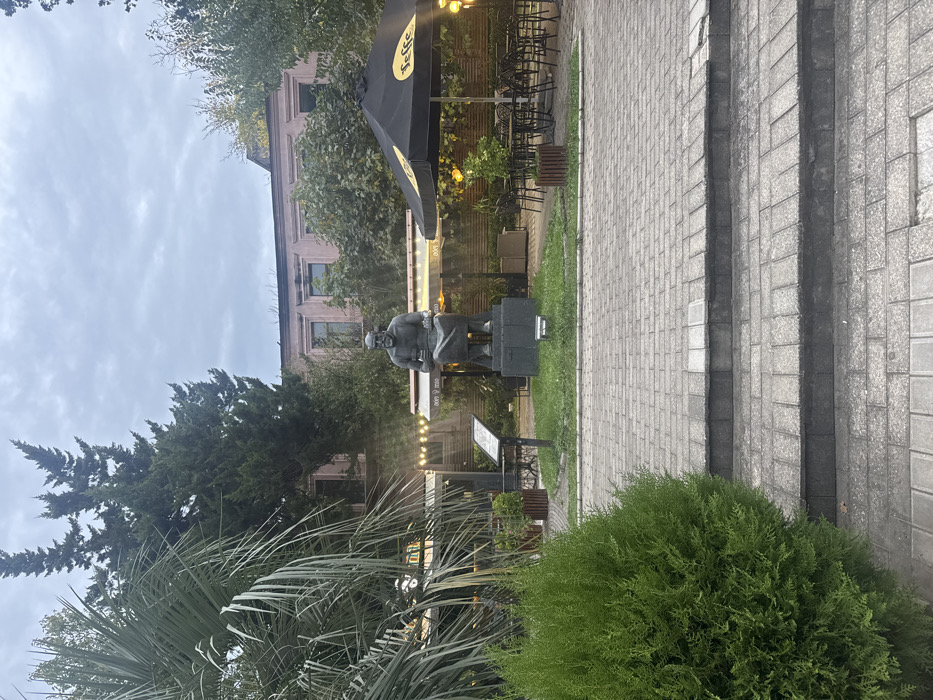 - "The image displays a statue and an outdoor cafe area in a park setting, identified as the monument to Ioane Petritsi located near the White Bridge in Kutaisi, Georgia" by FM-Sep6K2, licensed under CC BY 4.0