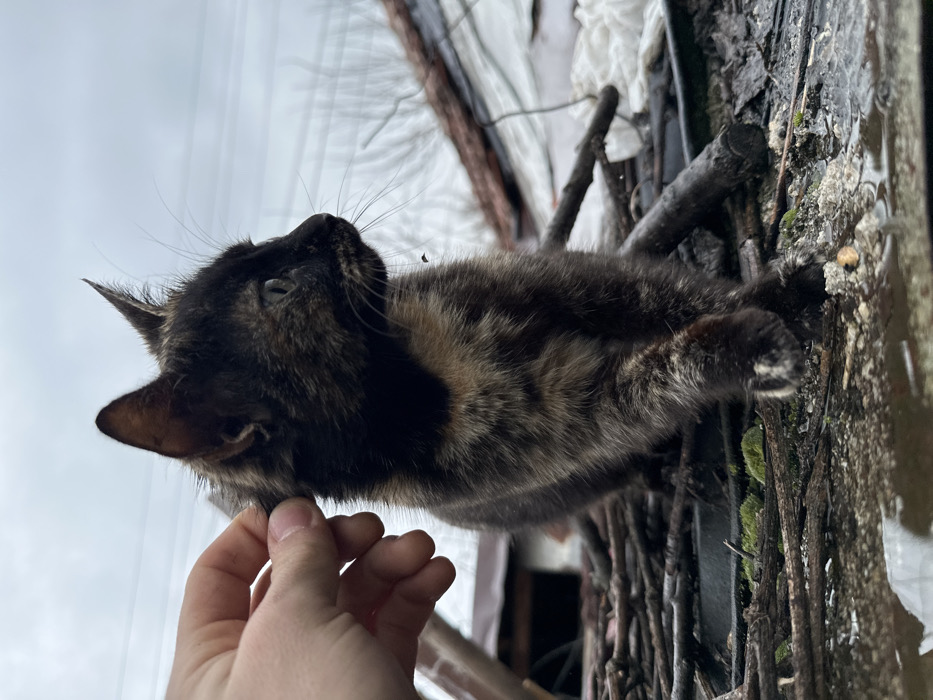 - "A tortoiseshell kitten with dark brown, black, and light brown fur is depicted outdoors in Saedinenie, Bulgaria, situated on a surface covered with numerous dry, dark branches and patches of green moss" by FM-nj7ub2, licensed under CC BY 4.0