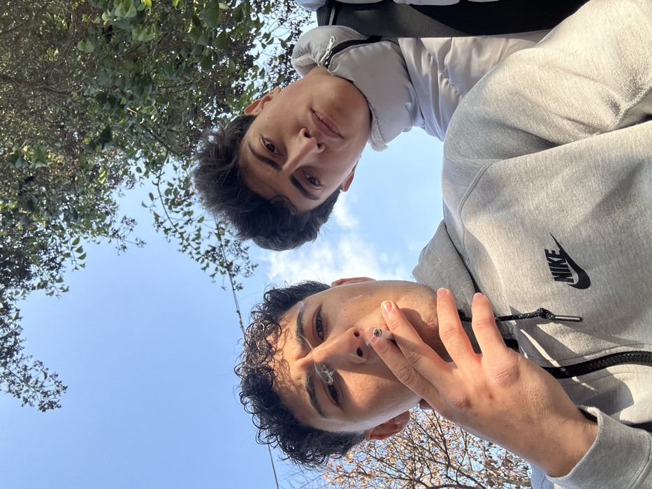 - "A low-angle outdoor photograph depicts two young males under a clear blue sky with tree branches visible" by FM-EsaHu1, licensed under CC BY 4.0