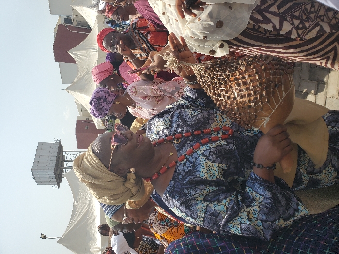 This image captures an outdoor social gathering in Lokoja, Nigeria, under bright daylight