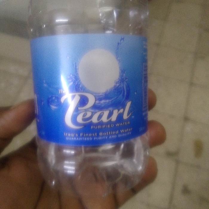 - "A human hand with dark skin firmly grasps a clear plastic bottle of "The Pearl Purified Water" in an indoor setting within Baghdad, Iraq" by FM-o4pOG2, licensed under CC BY 4.0