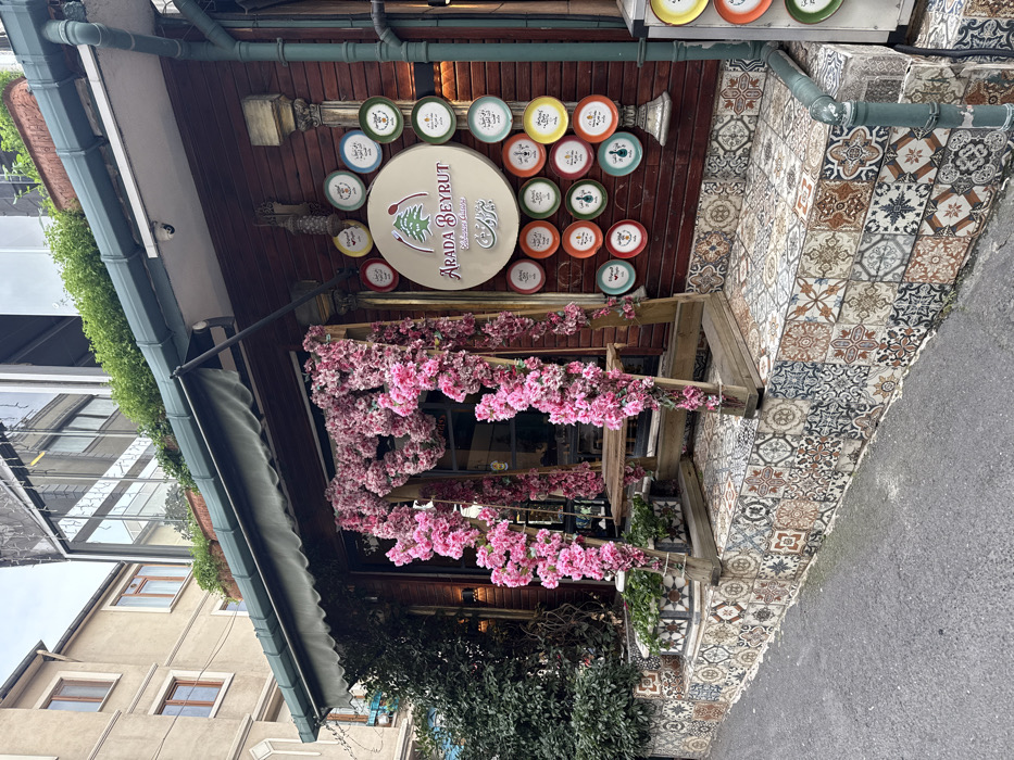 This image displays the facade of a business named "Arada Beyrut Lebanese Cuisine" situated in Beyoğlu, Turkey