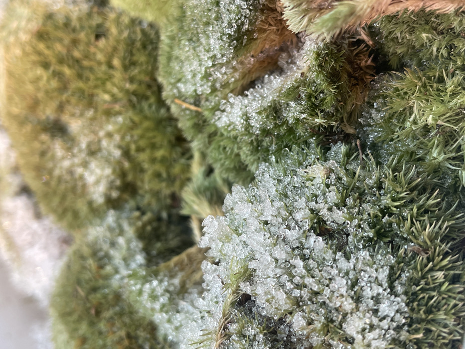 - "The scene, located in Pardes Hana-Karkur, Israel, depicts a close-up view of green moss covered with frozen precipitation" by FM-lYn4w2, licensed under CC BY 4.0