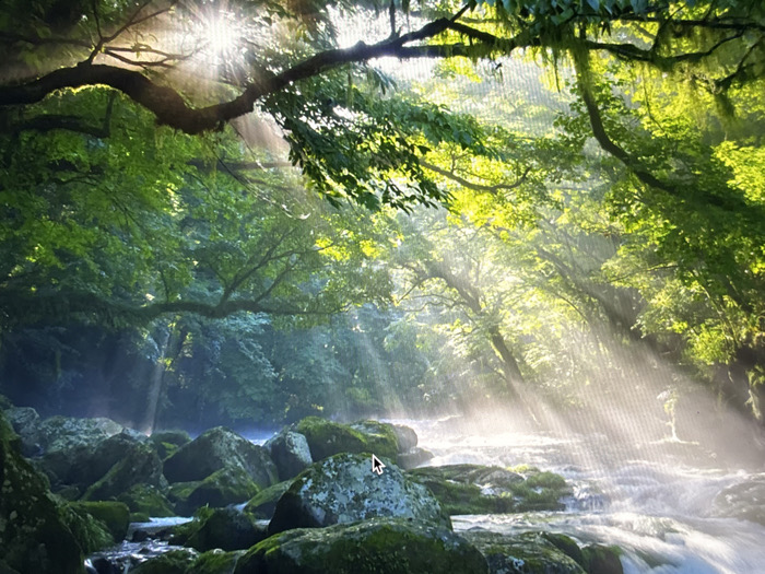 - "Sunlight streams through a dense, green forest canopy, illuminating a flowing river" by FM-5oJwf2, licensed under CC BY 4.0