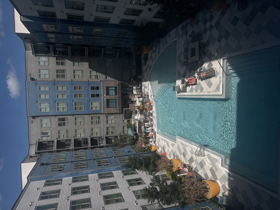 - "The image presents an elevated view of a modern apartment complex courtyard in Gainesville, United States of America, under clear, sunny conditions" by FM-CCvx83, licensed under CC BY 4.0