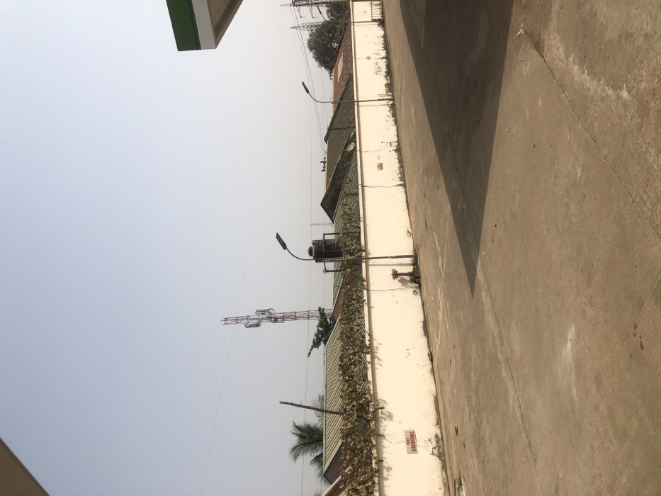 The image depicts an outdoor paved area, likely a forecourt, situated in Karu, Nigeria, under a bright, hazy daylight sky