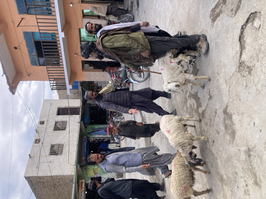 The image portrays an outdoor street scene in Qilla Saifullah, Pakistan, under an overcast sky
