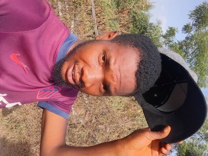 The image captures an adult male outdoors in Nagazi, Nigeria, looking directly at the camera