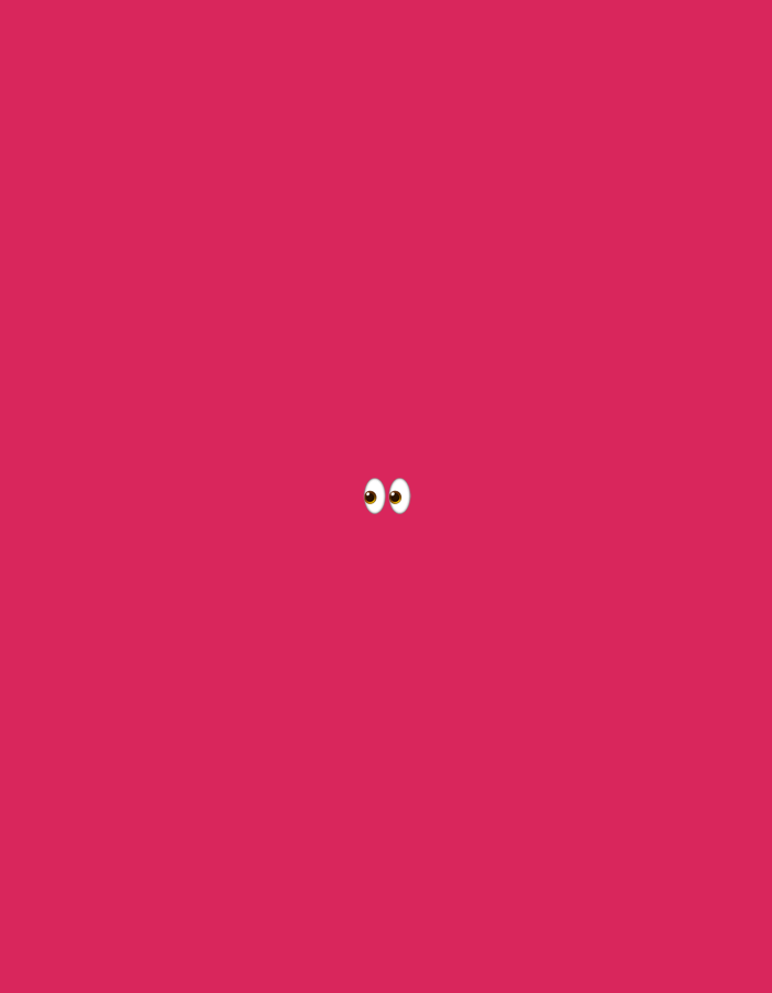 The image displays a solid magenta background (#E2216C). Centered horizontally and vertically within this field are two stylized, cartoon-like eyes. Each eye is represented by an oval white sclera with a smaller, circular brown iris and a central black pupil. No other subjects, objects, or environmental details are present. The scene does not depict any identifiable location, including Kafr Yasif, Israel, nor does it contain any people, actions, or interactions.