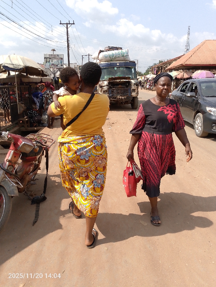 - "The image displays a bustling street scene in Nnobi, Nigeria, captured on 2025/11/20 at 14:04 under bright, sunny conditions with scattered clouds" by FM-LzJlZ2, licensed under CC BY 4.0