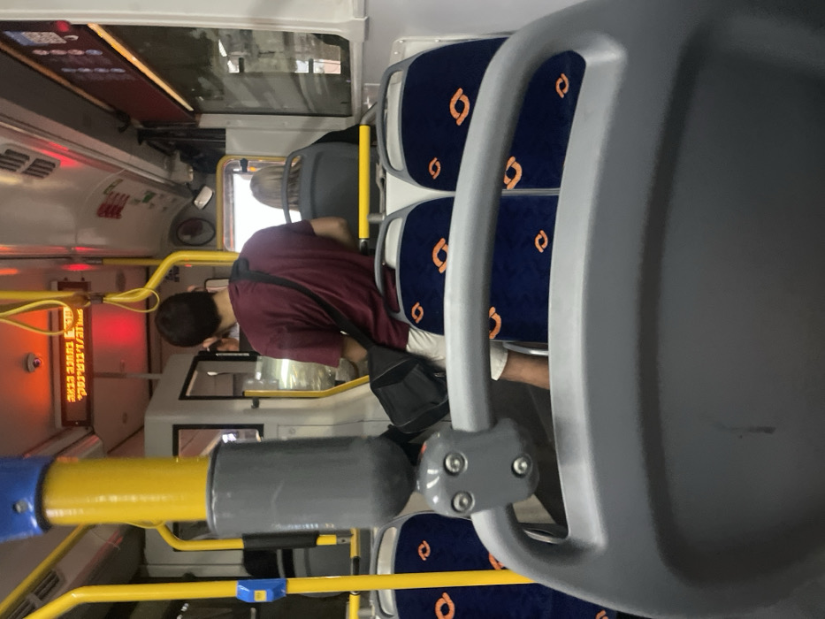 - "The image depicts the interior of a public transit bus, likely operating in Raanana, Israel, as indicated by the Hebrew text on the illuminated overhead display and the user-provided location context" by FM-AyUtz1, licensed under CC BY 4.0
