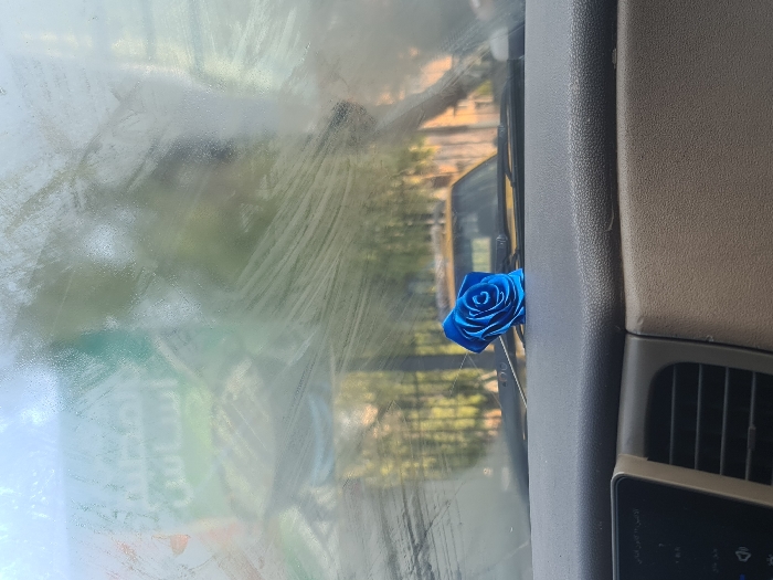 - "A blue rose rests against the interior of a car windshield, positioned near a grey trim piece and air vent" by FM-gCwqi1, licensed under CC BY 4.0